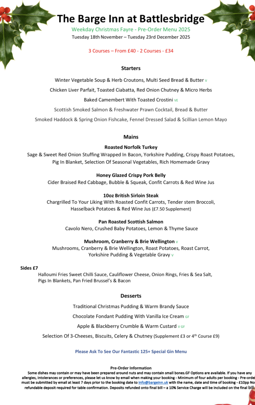 Our lovely festive menu is only available to pre-order. Thank you.