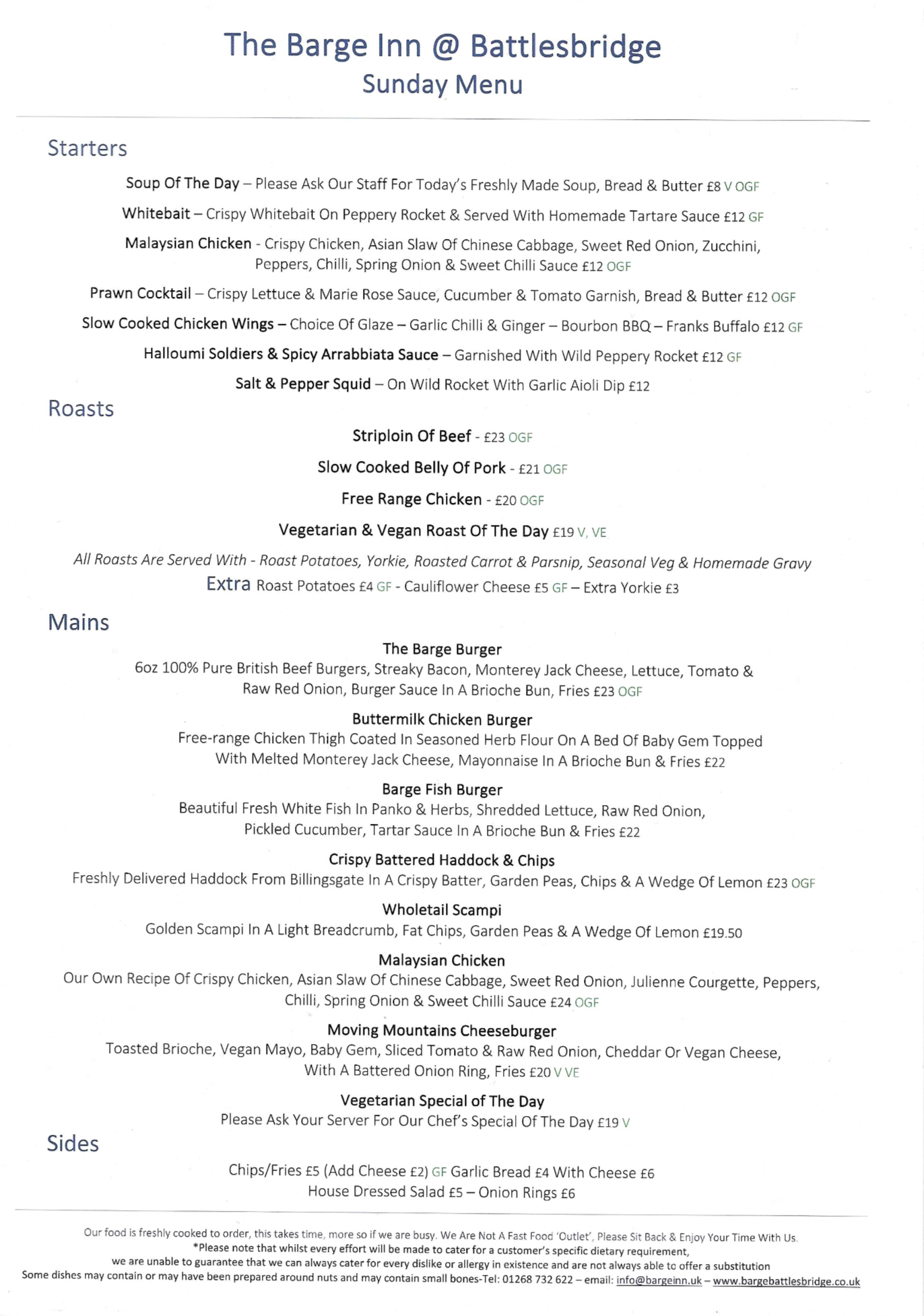 Our new menus below are sample menus as dishes may change according to the availability of produce, on Friday & Saturdays we serve our weekend Chef’s specials.